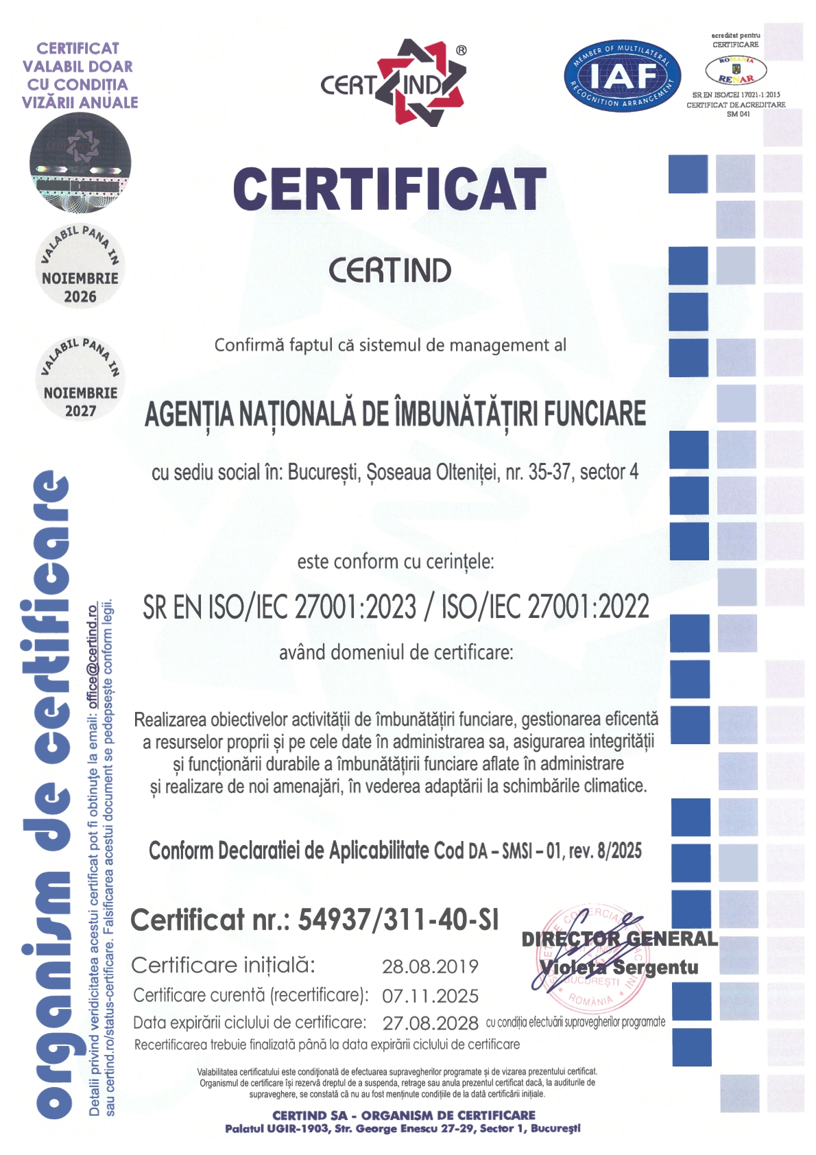 Având în vedere situația actuală generată de epidemia de COVID 19, începând cu data publicării anunțului, persoanele juridice vor transmite documentațiile necesare obținerii Certificatului de atestare pentru activități de îmbunătățiri funciare/viză anuală/ prelungire valabilitate, atât în format letric cât și electronic la următoarea adresă de e-mail: comisie.atestareif@anif.ro